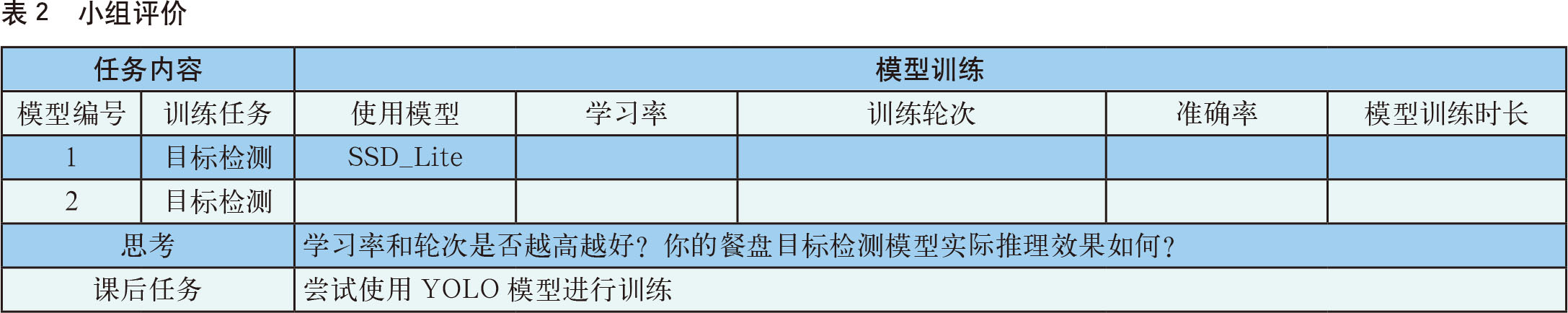 最后,学生通过分组制作项目报告或演示文档,系统展示实现过程、结果及实际运行演示。学习效果评价见表2。