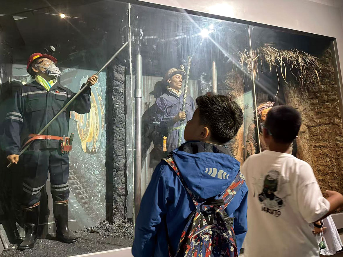 沉浸式体验 学生进入“煤海之光”展区,通过观察、操作虚拟煤矿开采模拟系统,具身体验矿工作业场景,感受矿物开采的艰辛。