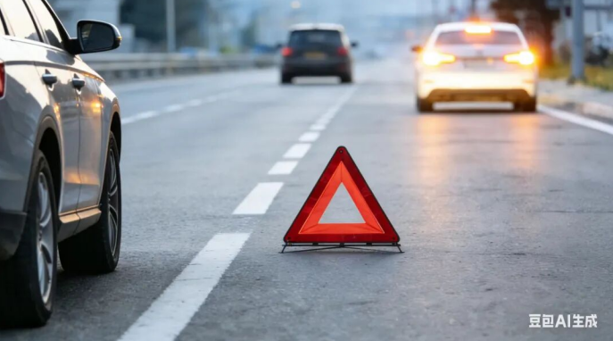 2.车祸现场:立即停车开双闪,来车方向50~100米外放置警示牌,检查漏油、起火等情况。