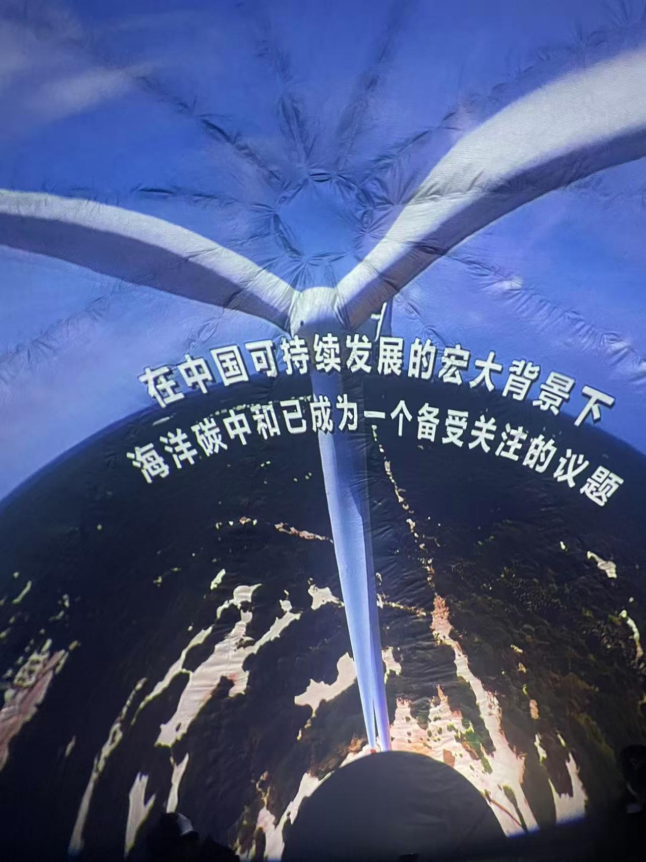 在球幕电影中,我经历了一场视觉与心灵的双重震撼。镜头从浩瀚星空缓缓拉近,定格于蔚蓝的地球,又引领我们潜入深邃的海洋。那一刻,我仿佛化身为一尾游鱼,亲身见证这片蓝色家园的岁月变迁。影片中,鱼群自在穿梭,藻类摇曳、贝壳散布——海洋资源如此丰饶,而“海洋碳中和”也正成为关乎未来的重要议题。