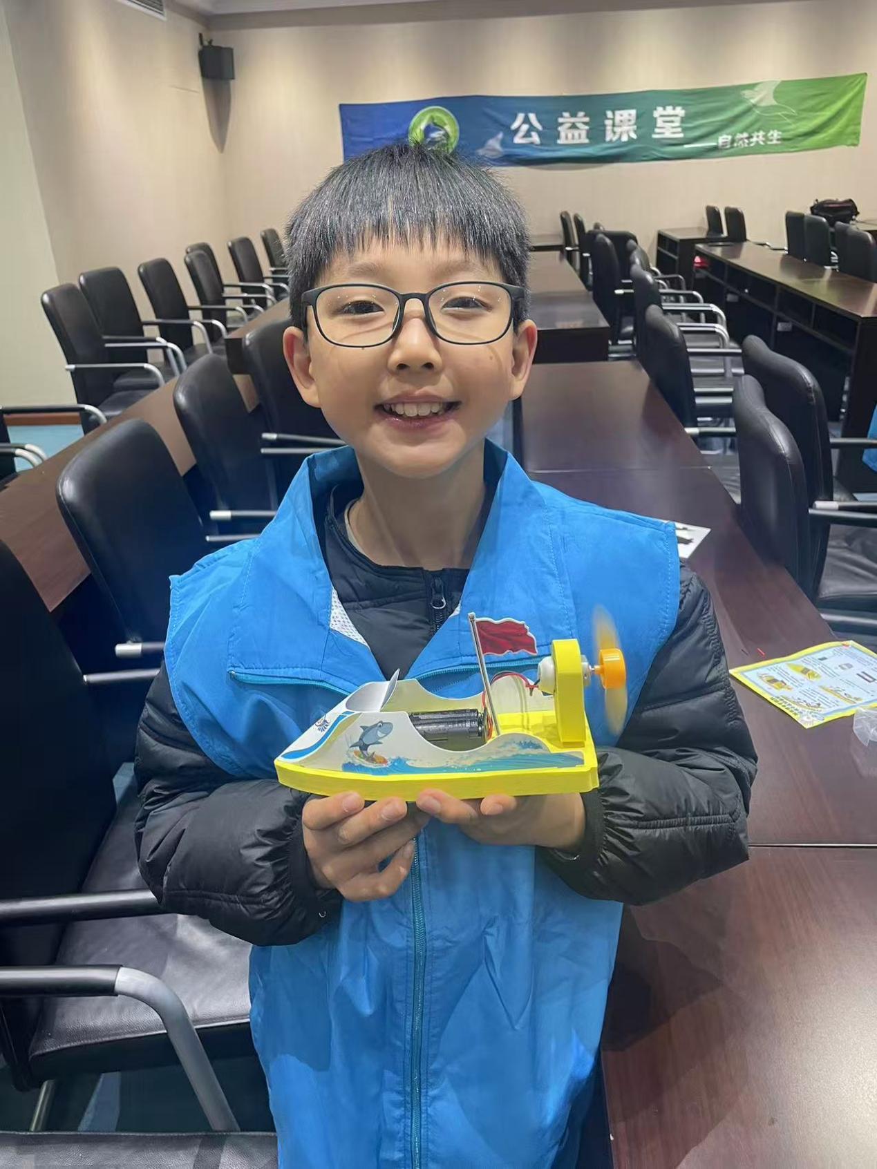 活动尾声,我们还参与了可持续渔业主题的手工制作,亲手完成了风力船模型。风力船以风为动力,借助风能推动船体前行,生动体现了自然能源的转化与利用。在老师的指导下,每位孩子都成功制作出自己的风力船,并荣获“绿色低碳环保爱心小卫士”证书,为这次充实而有意义的活动画上了美好的句号。