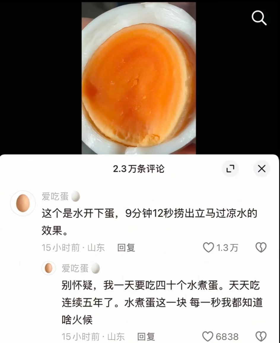 最近山东博主“爱吃蛋”火出圈了!靠精准煮蛋技巧3天涨粉290多万,网友直呼“鸡蛋仙人”。