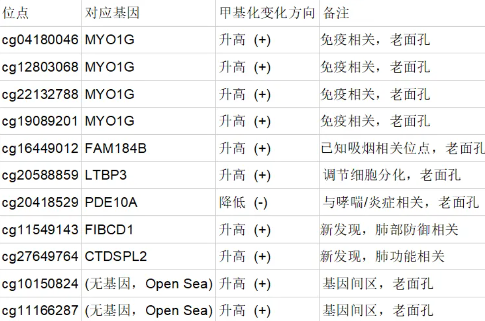 在本次研究发现的11个受损位点中,有4个都集中在同一个基因上——MYO1G。这是目前已知与吸烟暴露关联最紧密的基因之一。