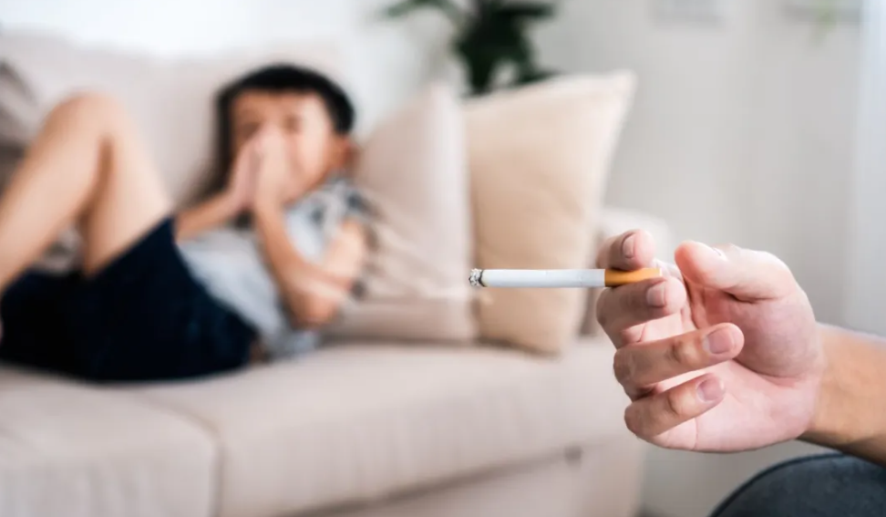 虽然吸烟的家庭成员认为自己只是在阳台吸烟,或者开窗通风了,但“三手烟”(附着在衣服、沙发、地毯上的毒素)以及空气中残留的微粒,依然会被孩子吸入。而且很多儿童还会把受到污染的物品直接往嘴里塞。