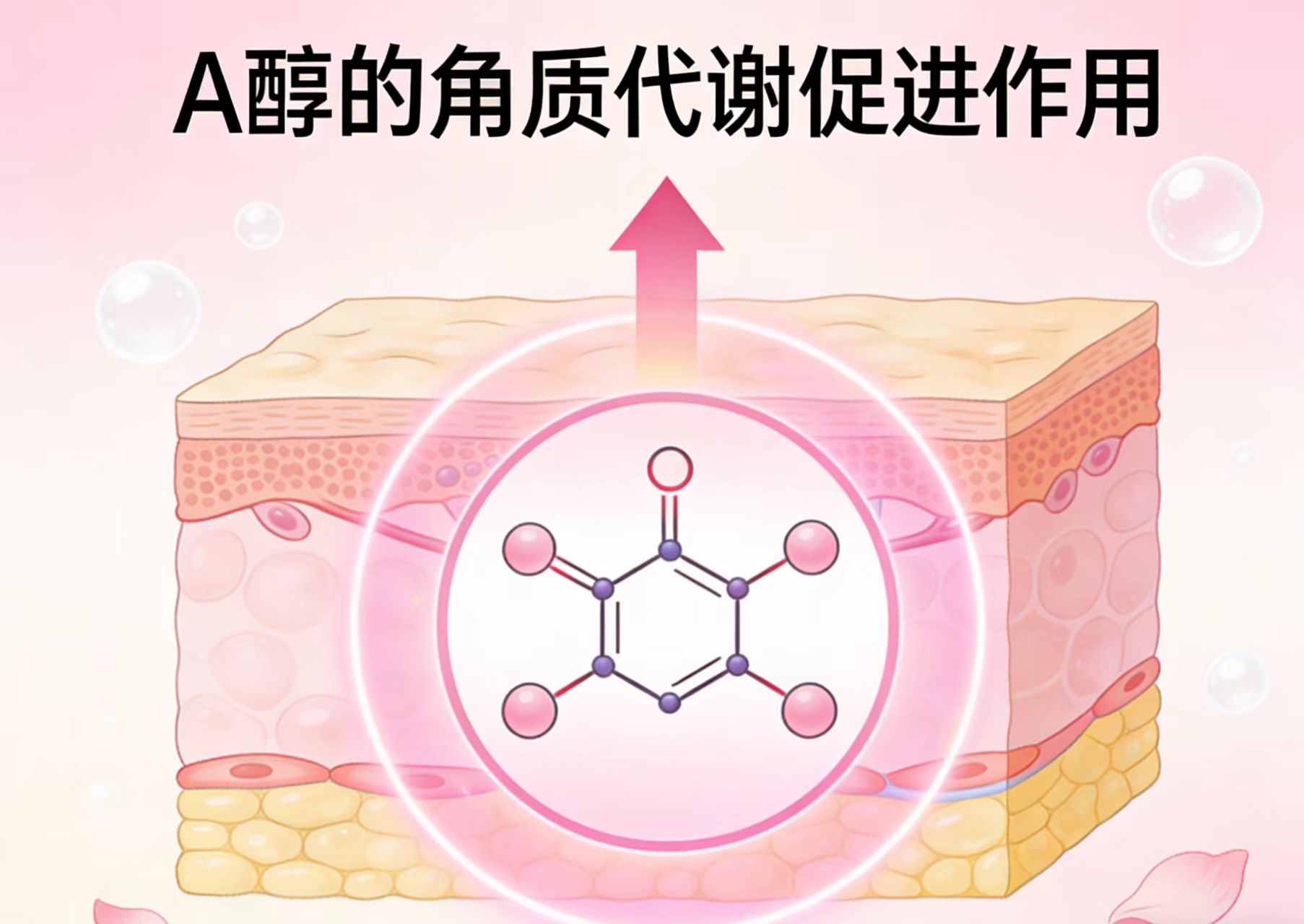 A醇作为维A酸的衍生物,具有温和不刺激皮肤的特性,经皮肤吸收后可转化为A酸。该物质能够抑制色素合成,促进皮肤更新。其核心功效之一便是促进角质代谢,帮助改善粗糙、暗沉、痘印等多种皮肤问题。今天,我们就从皮肤生理结构出发,通俗解读A醇促进角质代谢的作用原理。
