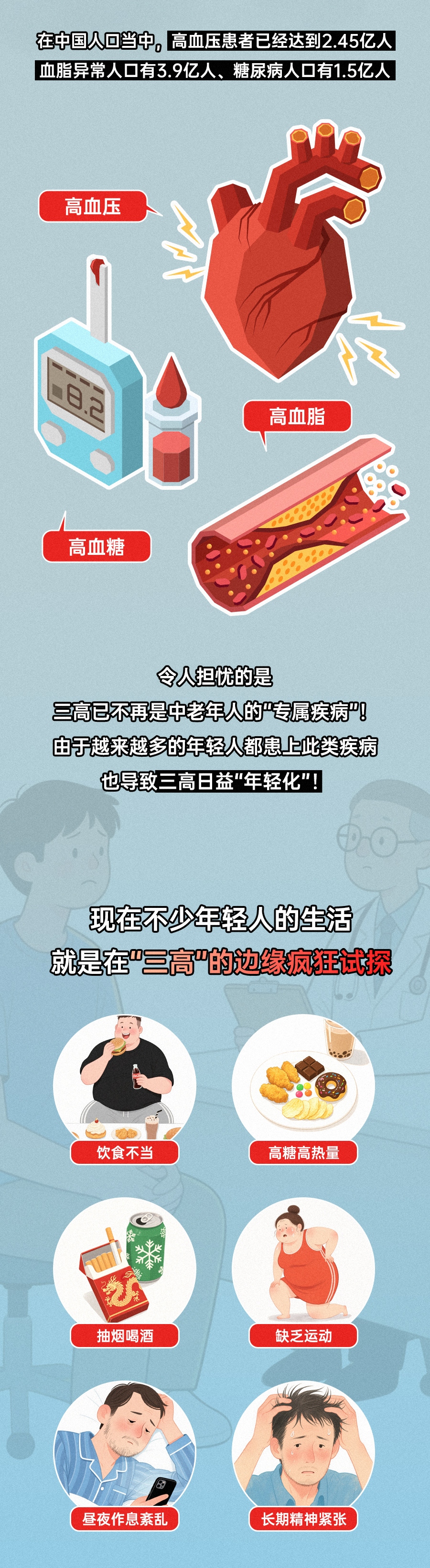 当外卖代替了厨房,电子屏幕占据了运动时间,熬夜成为常态,“高血压、糖尿病、高血脂”这些常被认为“专属”中老年人的疾病,或许已经悄悄盯上年轻人。