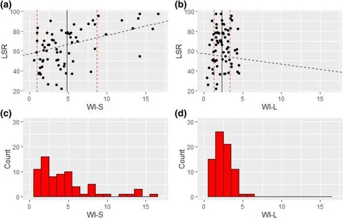 参考资料[3]:仰卧位觉醒指数(WI-S)和侧卧位觉醒指数(WI-L)与侧卧位比率(LSR)的关系存在差异,大多数参与者的WI-L或WI-S值在每小时1.5-2.5次觉醒之间;然而,WI-S的分布更广,标准差更大