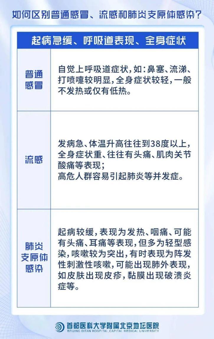 由此可见,区分感冒、流感和支原体肺炎并不难:
