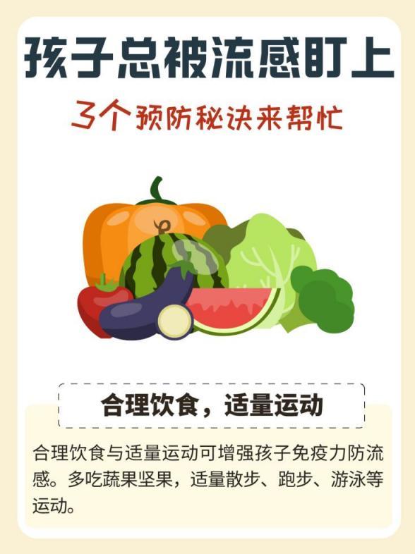 注意:流感疫苗是预防儿童流感最有效的方式,每年秋冬季节提前带孩子接种,能大大降低感染风险。平时带孩子出门戴口罩、勤洗手、保持社交距离,也能减少传播。