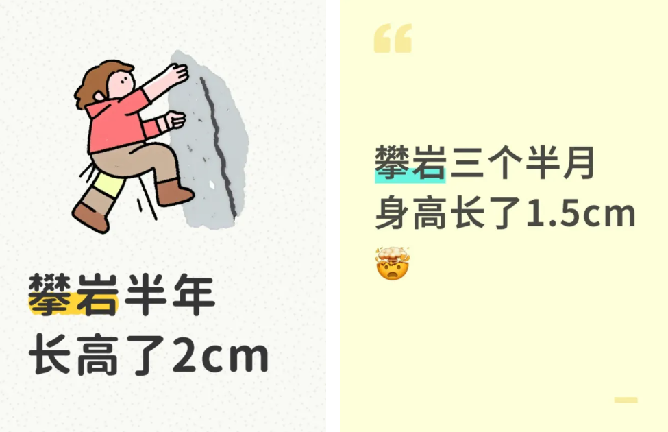 这两年,攀岩逐渐成为了一项新兴的火热运动,很多人沉迷在攀岩带来的刺激体验里,也有些人在攀岩一段时间后,惊喜地发现在本该结束发育的年纪竟然长高了!