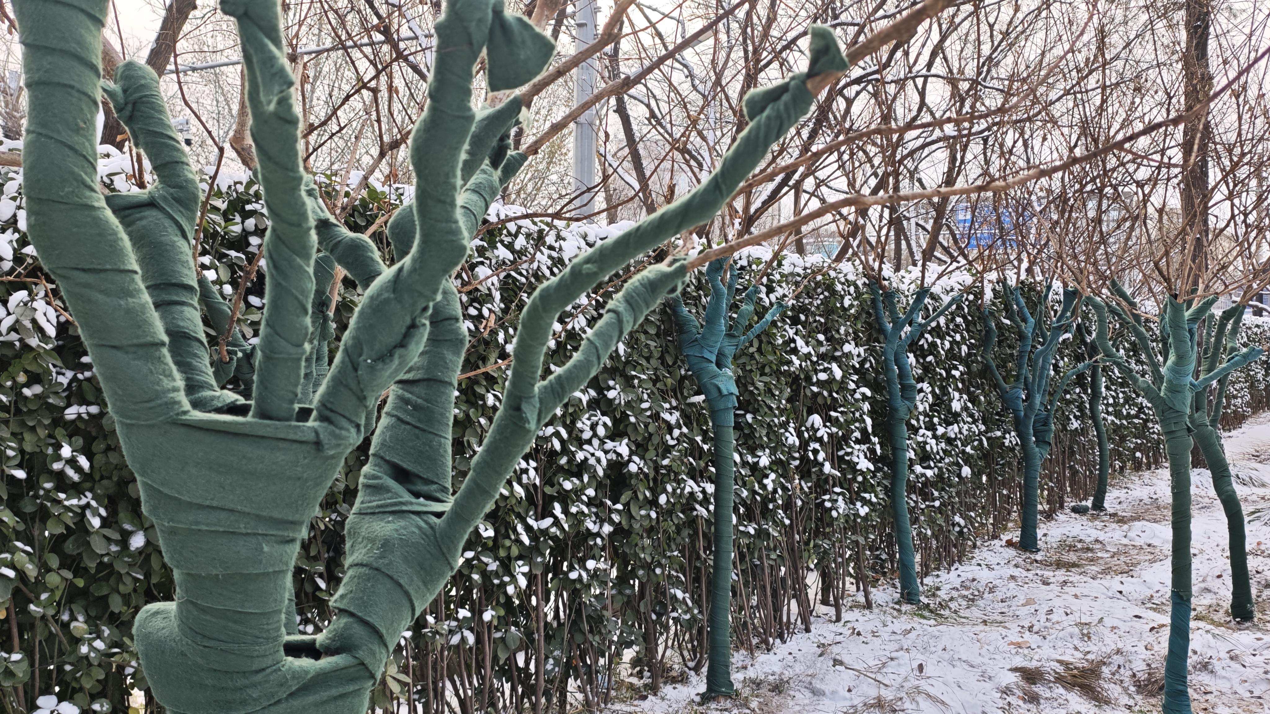 北京市园林绿化局城镇绿化处一级主任科员姬鹏告诉记者,针对不同类型的植物,园林绿化部门制定了差异化的防寒养护方案:对于新移栽、新引种的植物,以及重点景观区域的绿化植被,会根据实际需求搭建防寒屏障,为它们抵御冬日严寒;而像国槐、侧柏这类乡土树种,早已适应了首都的冬季气候,无需额外设置风障,这样既节约了养护资源,也让冬日的首都花园城市多了一份自然通透的绿意。