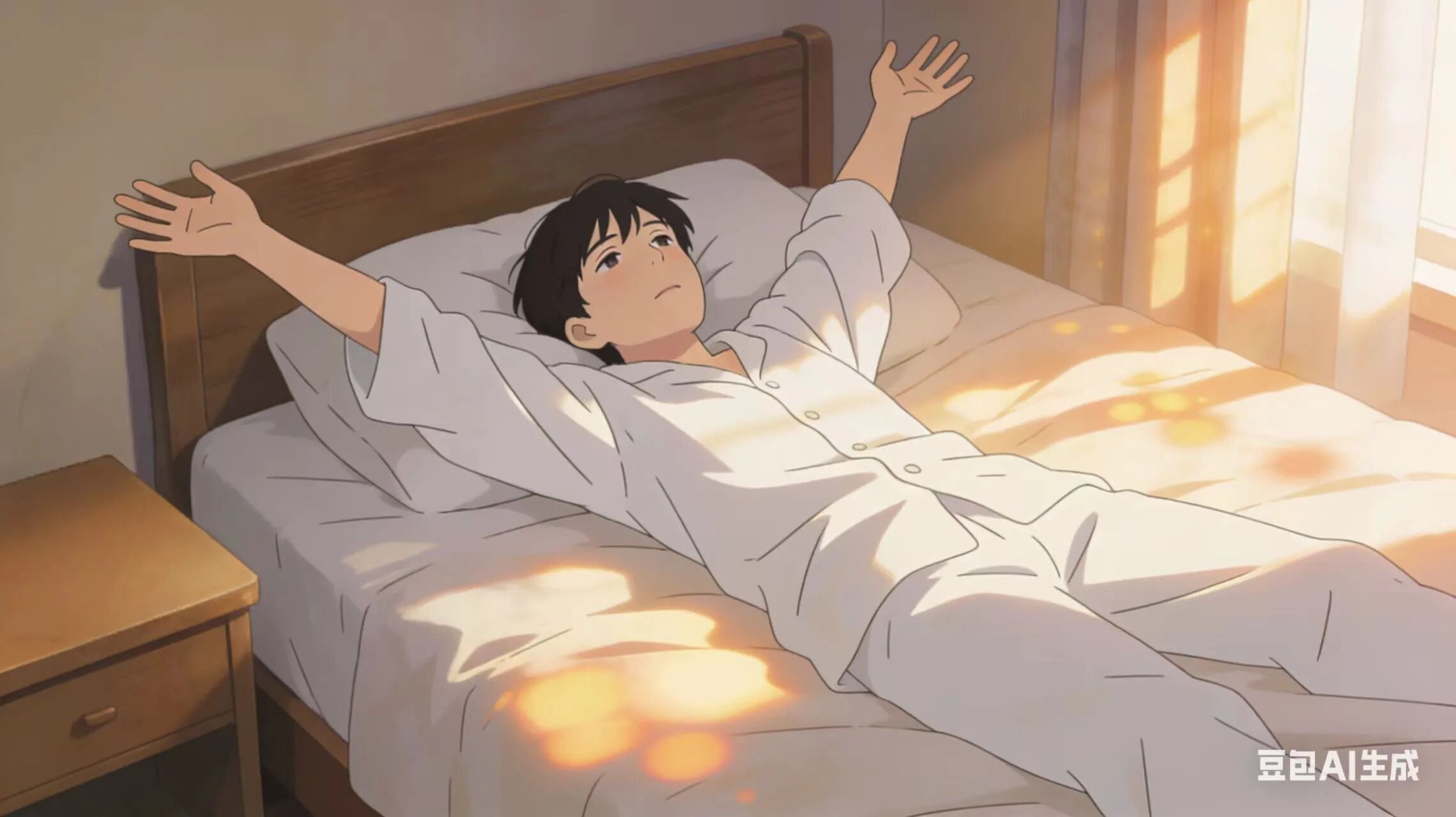 1. 晨起5分钟:躺在床上做几个温和的伸展。