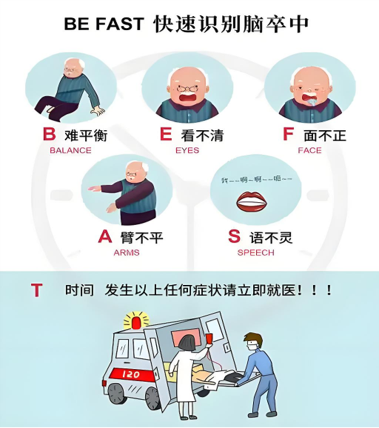 多年的职业本能让我们一眼就识别出:这极可能是脑卒中(中风) 的典型症状!值班医生闻讯火速赶到,迅速判断:情况危急,必须立即送往急诊!需要马上做CT排查是否是大面积脑梗,因溶栓治疗,有着严格的“黄金时间窗”——每延误一分钟,都可能意味着数百万脑细胞的不可逆死亡。