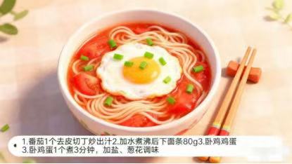 核心作用:番茄的天然酸甜味能激发食欲,鸡蛋补充优质蛋白,软烂面条易咀嚼消化。