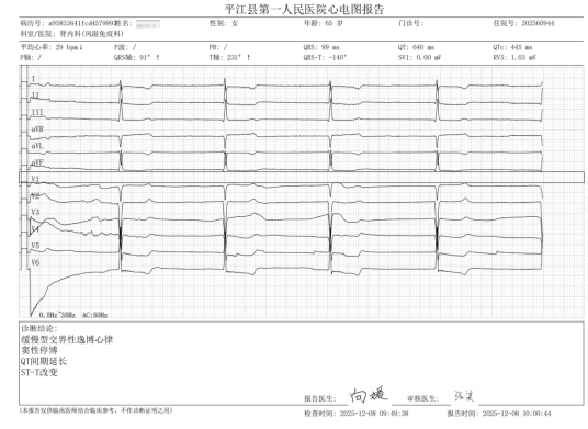 入院时,何奶奶心率仅29次/分,心电图显示逸搏心律、窦性停搏。急诊查血钾高达6.39mmol/L。心脏随时停止跳动,情况紧急。