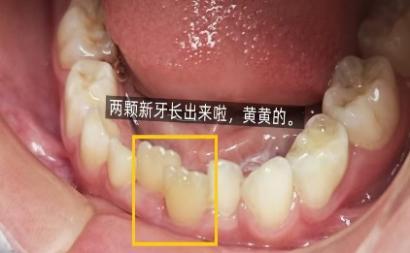 新长出的恒牙紧邻着即将脱落的乳牙,这种并排对比放大了颜色差异。当乳牙全部脱落、恒牙全部长出后,牙齿颜色会显得更加均匀协调。