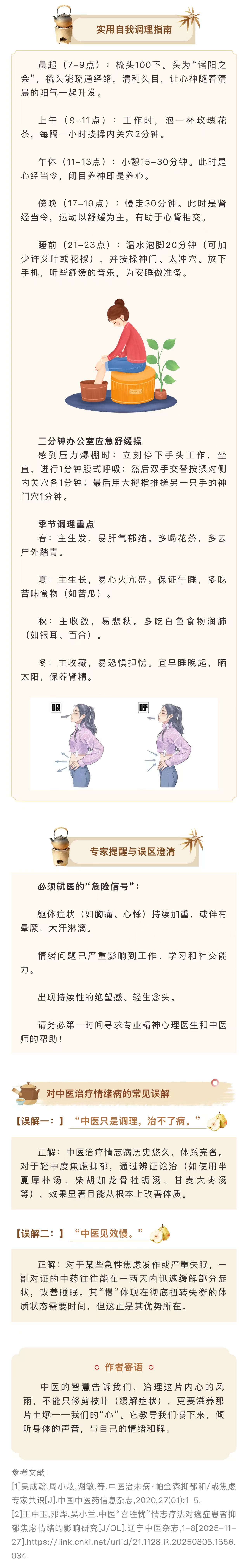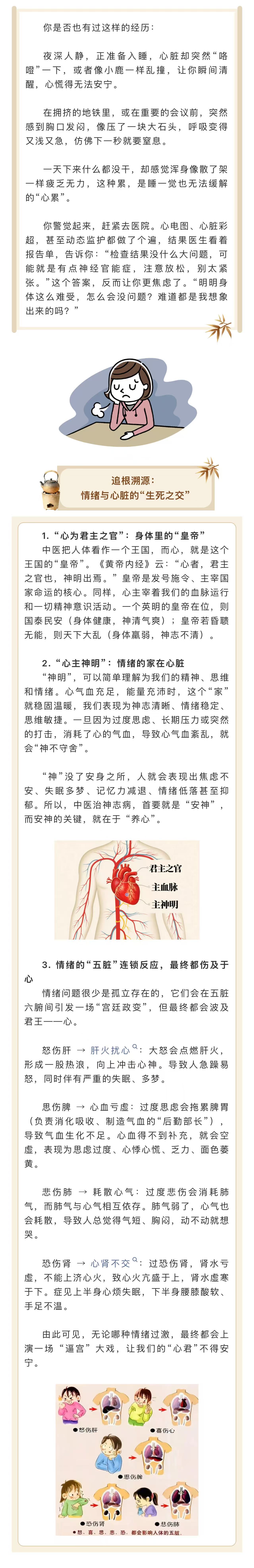 图文简介: 本文指出情绪过激最终会伤及心脏,从中医“心为君主之官”理论出发,详述情绪与心的关系,介绍食疗、穴位按摩等从心调理焦虑抑郁的妙法,给出实用自我调理指南。