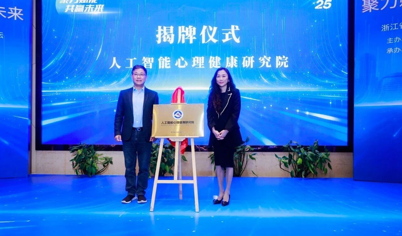 12月19日,在浙江省环境设备行业发展论坛上,浙江省社会组织总会会长江宇为人工智能心理健康研究院揭牌。