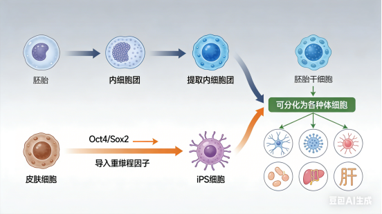 2. 分化全能性:这是胚胎干细胞最核心的“超能力”。它们有潜力发育成构成人体所有200多种不同类型的细胞。无论是搏动的心肌细胞、传递信号的神经元、携带氧气的红细胞,还是分泌胰岛素的胰岛细胞,它们都能“变”出来。正因如此,它们又被称为“全能干细胞”或“万能细胞”。