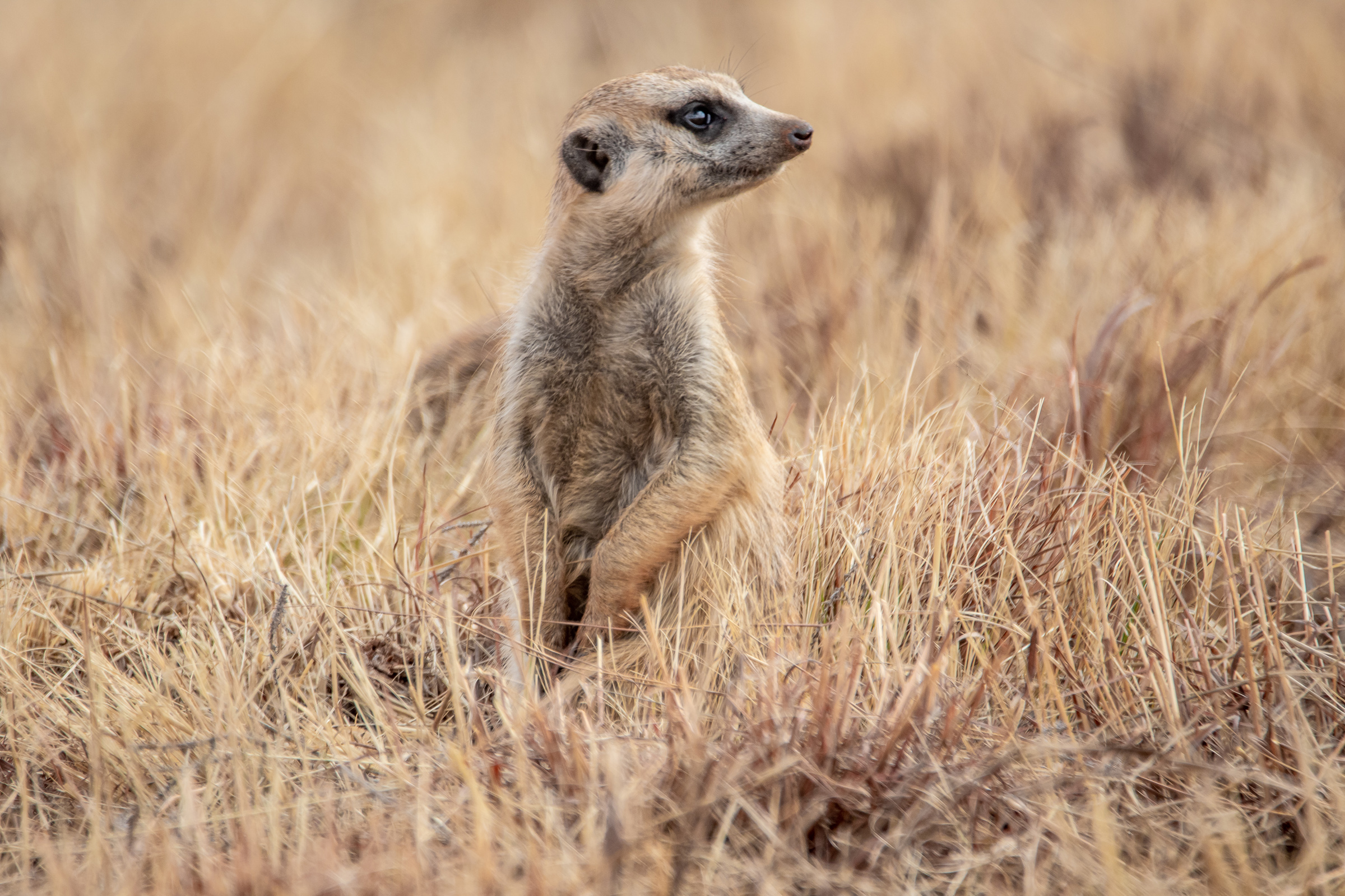 狐獴,别名猫鼬,属于食肉目獴科狐獴属,是一种小型社会性哺乳动物。主要分布于非洲南部的卡拉哈里沙漠及周边干旱草原、稀树灌丛地带。体长约25—35厘米,尾长17—25厘米,体重约0.6—1公斤。毛色灰黄带棕,背部有深色横纹,眼睛周围有黑色斑块,耳廓可闭合以防沙土进入。
