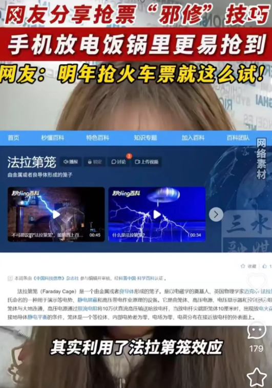 最近,网上火了一种抢票方法,很多博主分享自己的经验时称:把手机放进电饭锅内胆,狂点屏幕,抢票成功率就能直线上升,仿佛开了物理外挂。