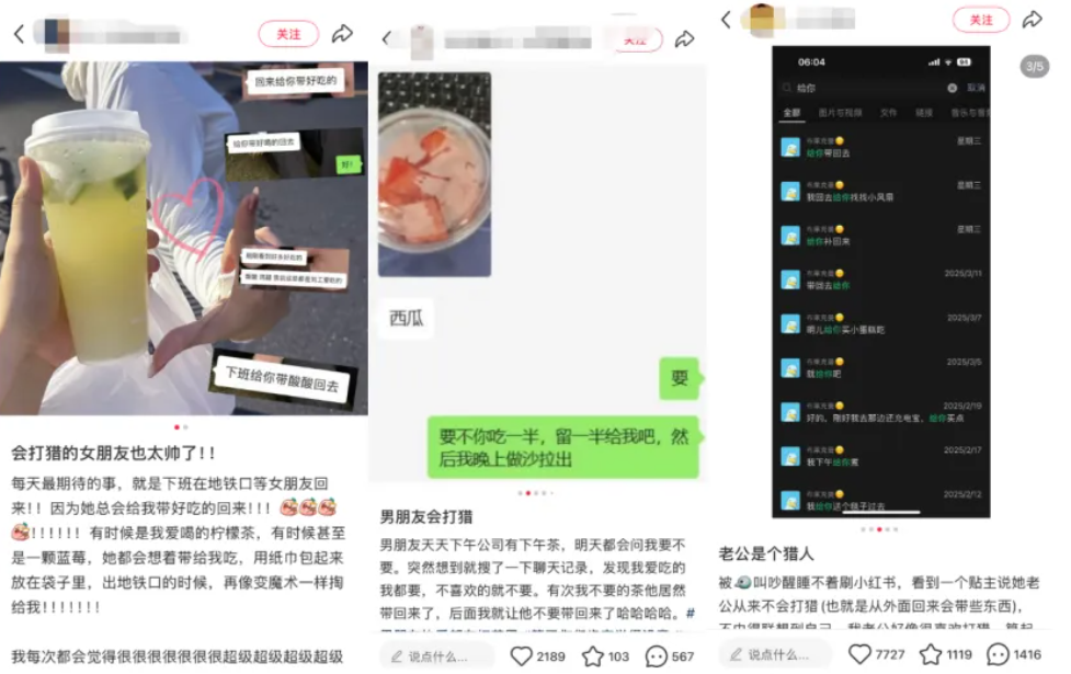 在社交媒体上,许多网友都在分享拥有一个“会打猎回家的伴侣”是怎样一种幸福: