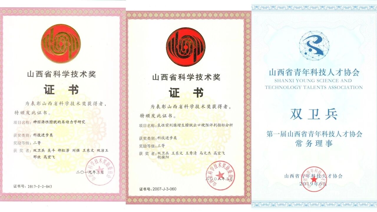 在科研成果转化与学术产出上,双卫兵硕果累累:主持国家级、省级科研项目30余项,发表论文200余篇(其中SCI收录40余篇),主编论著5部,参编教材/论著10余部,授权实用新型和软件著作权5项;获得山西省科学技术奖科技进步类奖项(一等奖1项、二等奖3项、三等奖3项),恩德思医学科学技术奖2项。他还注重卫生经济学研究,自2008年起便推动药品零差率等措施落地,将“高效、合理、价廉”的理念融入临床实践,让科技进步真正体现在患者“看得起病、看得好病”上。