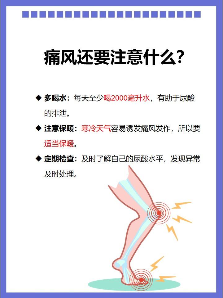 保持规律的作息时间,避免熬夜和过度劳累。长期熬夜和过度劳累会导致身体免疫力下降,内分泌紊乱,影响尿酸的代谢和排泄,增加痛风发作的风险。