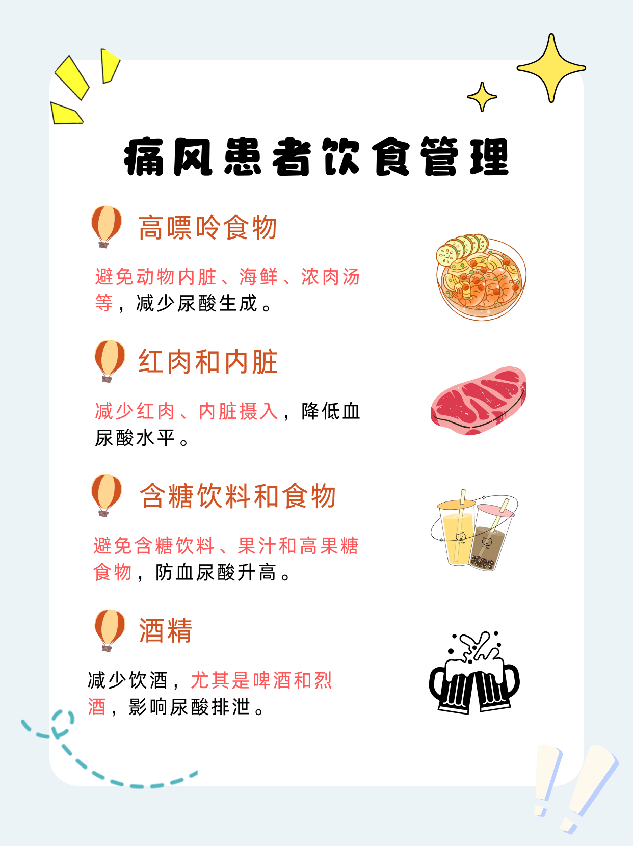 合理饮食是预防和治疗痛风的基础。要减少高嘌呤食物的摄入,多吃低嘌呤食物,如蔬菜、水果、全谷类等。同时,要限制饮酒,尤其是啤酒和白酒,可以适量饮用红酒。多喝水,每天至少饮用2000毫升以上的水,以促进尿酸的排泄。避免饮用含糖饮料,可以选择白开水、淡茶水等。