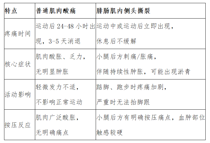 二、普通肌肉酸痛与腓肠肌筋膜撕裂有哪些区别?