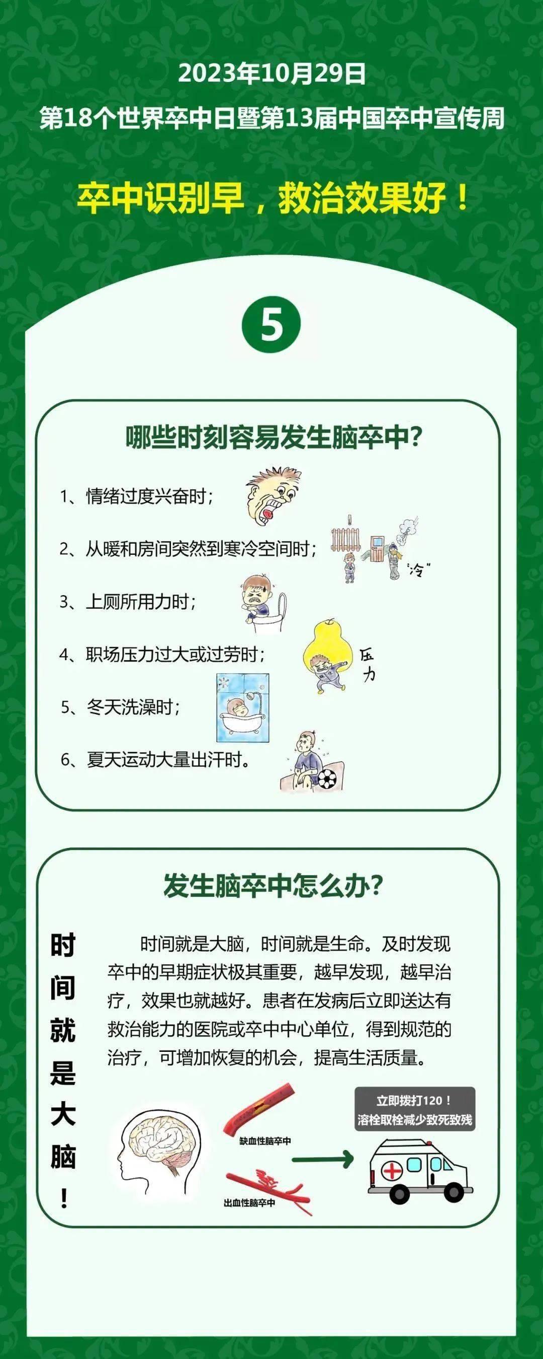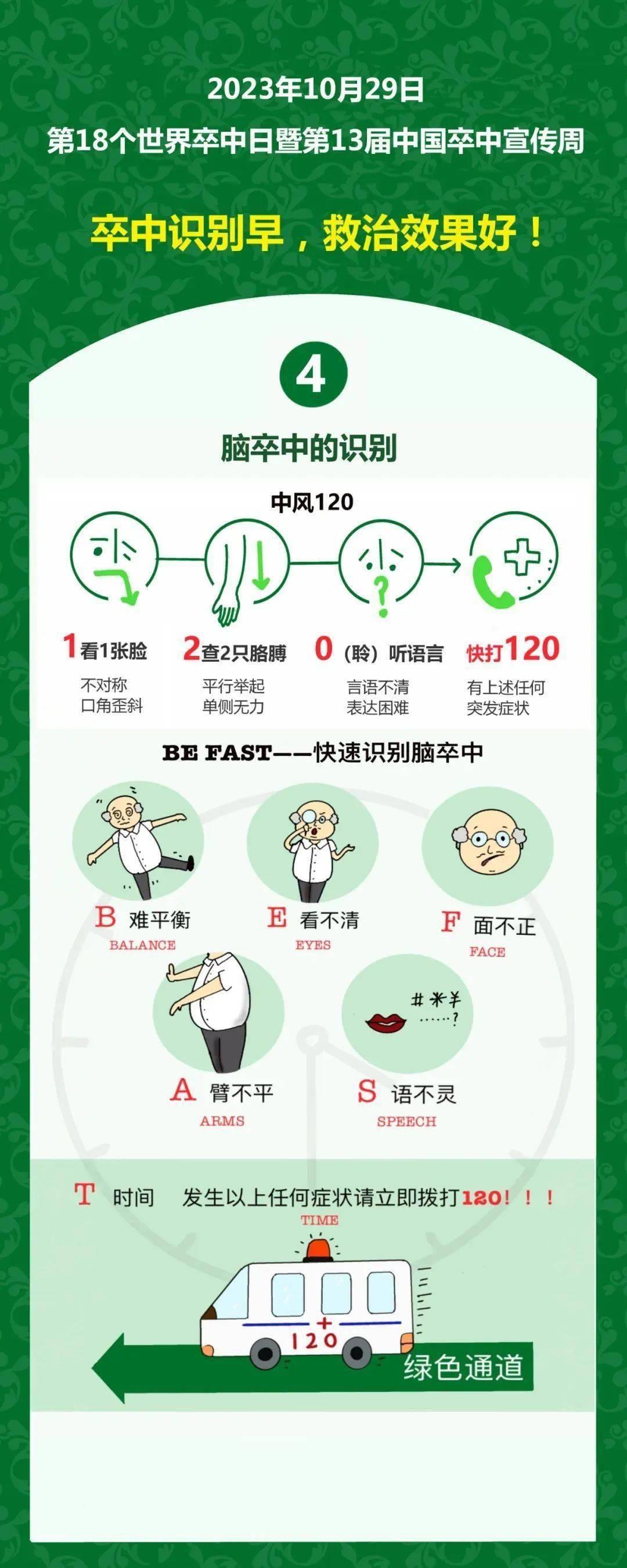 T(Time,时间):一旦发现上述任何一种症状,应立即拨打急救电话,尽快将患者送往有救治能力的医院。时间就是大脑,每耽误一分钟,就会有大量的脑细胞死亡,患者的预后也会越差。