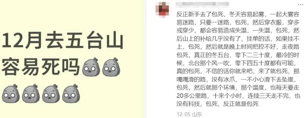 而众多成功者的视频,大多隐去了背后的危险。壮丽的云海、日照金山和看似潇洒的独行背影,让评论区不少人都戏谑地表示“鳌太线路线我倒背如流,明天就去穿“。其中,不乏像孙亮这样真正出发的人。