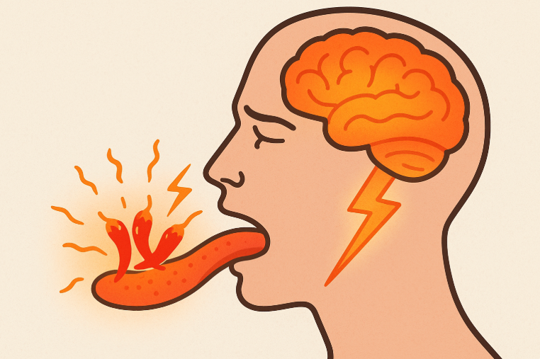 我们感受到的辣,其实并非一种味道,而是一种痛觉和热觉的混合感受。这一切都源于辣椒中的辣椒素。当我们吃下辣椒,辣椒素会与舌头上的特定受体结合,向大脑发送“灼热”和“疼痛”的信号。这就是为什么吃辣会“烧嘴”,甚至让人流汗、流泪。