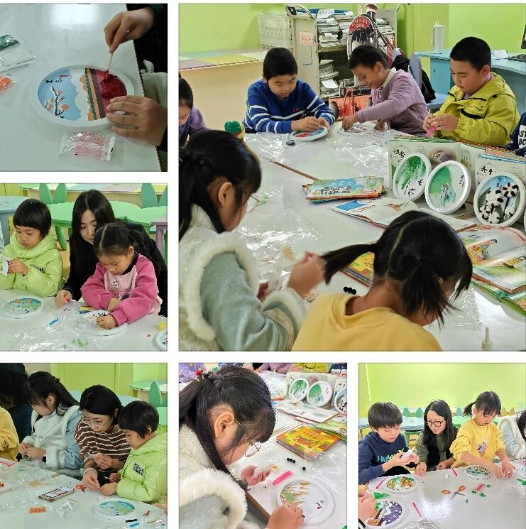 最受孩子们欢迎的环节当属节气盘手工制作。工作人员为大家分发了专属节气盘材料包。在馆员的指导下,小朋友们充分发挥想象力与创造力,用画笔、黏土、贴纸等工具精心装点——迎春花代表立春,枫叶象征霜降,麦穗寓意芒种……一个个独一无二、充满童趣的节气盘就此诞生。孩子们在动手制作的过程中,切身感受节气文化的独特韵味与魅力。