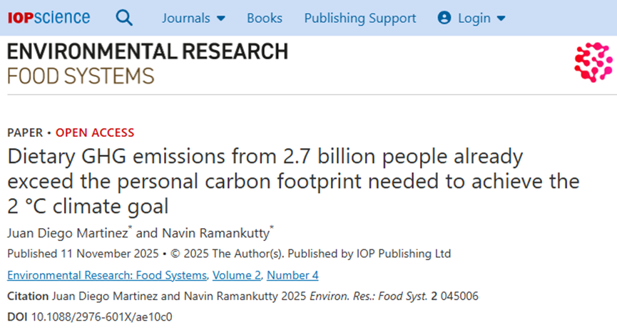 日前,不列颠哥伦比亚大学的研究团队在《环境研究:食物系统》期刊发表了一项重磅研究,结论令人警醒:全球已有27亿人的饮食相关温室气体排放,超出了将全球变暖控制在2℃以下所需的个人碳足迹上限。更关键的是,若不及时调整,到2050年,全球90%的人都需要改变现有饮食方式。