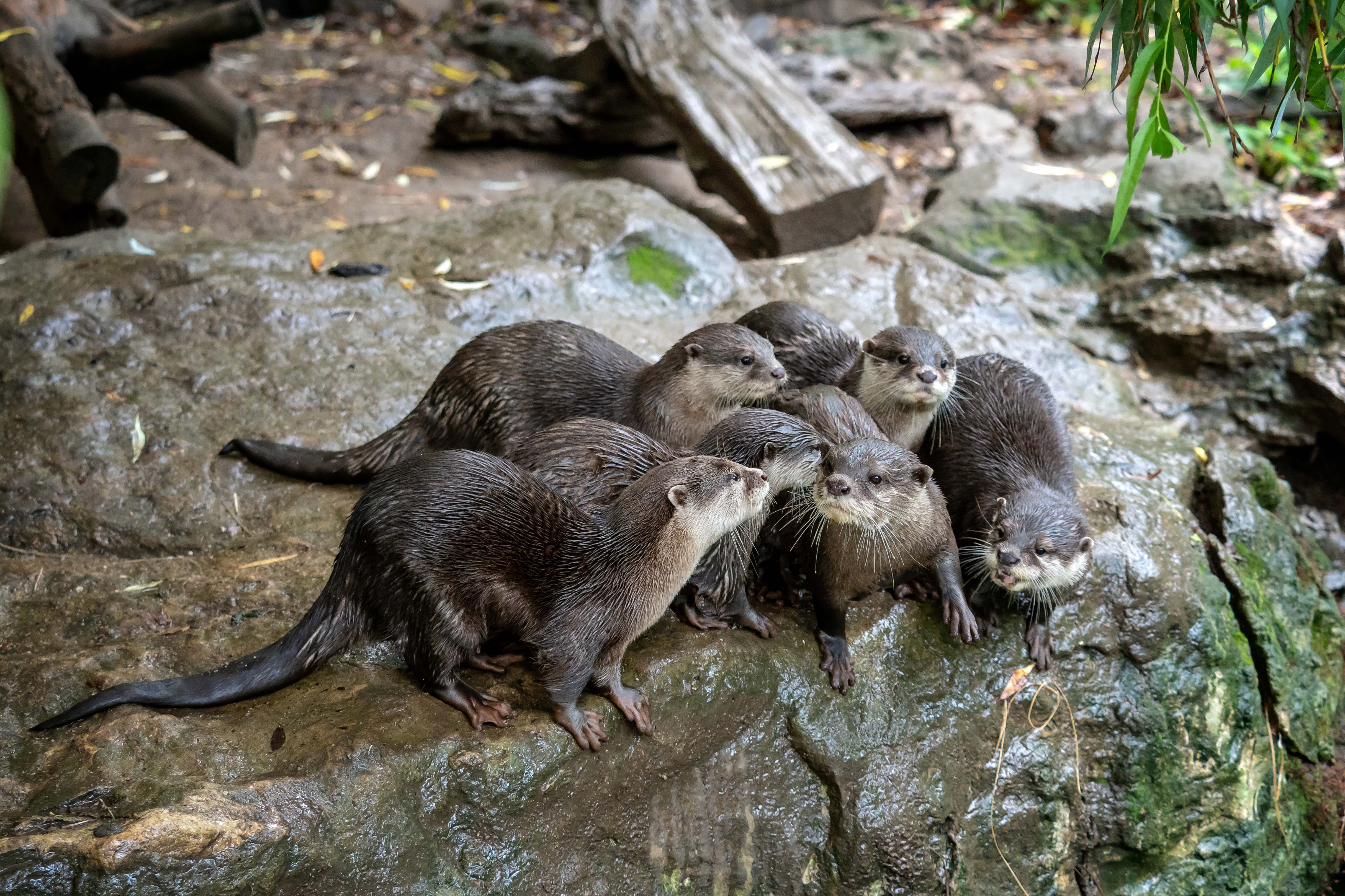 水獭通过群体协作增强防御能力,提高捕捉食物效率。(图片来源:包图网)