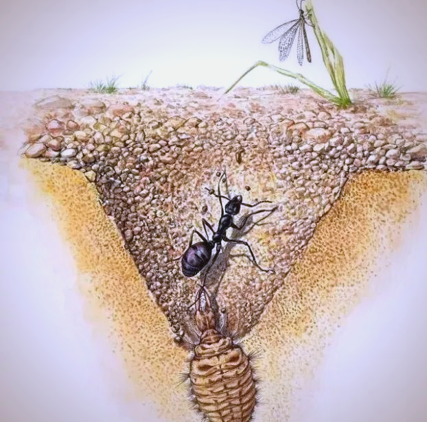 在昆虫世界的微观战场上,蚁狮是“关门捉贼”策略的顶级建筑大师。这种其貌不扬的幼虫,从不主动追逐猎物,而是以大地为画布,用沙土为材料,精心构筑一个致命的漏斗形陷阱,静待猎物自投罗网,然后上演一场“沙瀑活埋”的好戏。