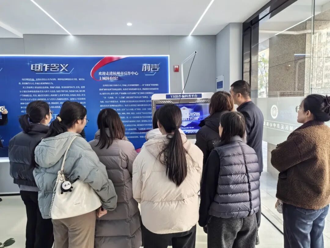 中国人民保险公司上城支公司、清波街道相关负责人也带队专程赴反诈中心上城体验馆参观学习,实地探寻科普反诈与基层治理融合的有效路径。据悉,清波街道正规划建设一处300平方米的科普反诈体验中心,此次前来既是为了系统借鉴场馆布局、设备选型、内容设计等方面的成熟经验,更是为了深入了解科普反诈模式在提升群众防骗意识、助力基层平安治理中的实际成效,为后续打造贴合辖区实际、兼具实用性与互动性的体验中心夯实基础。