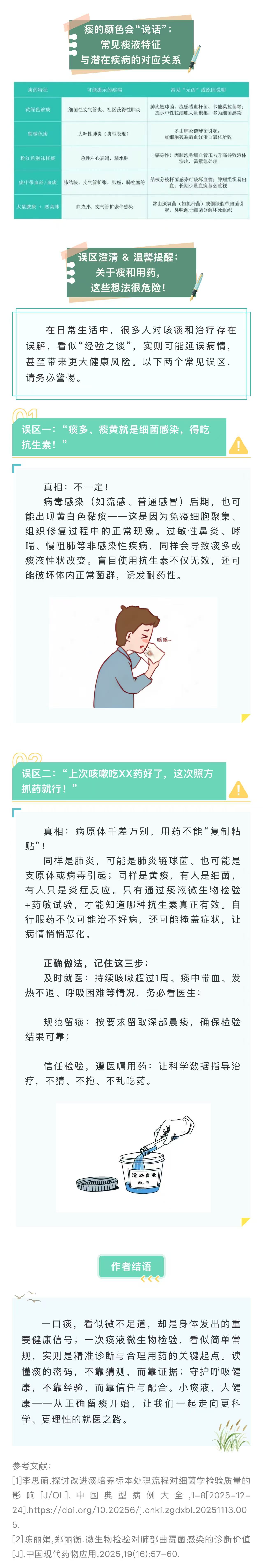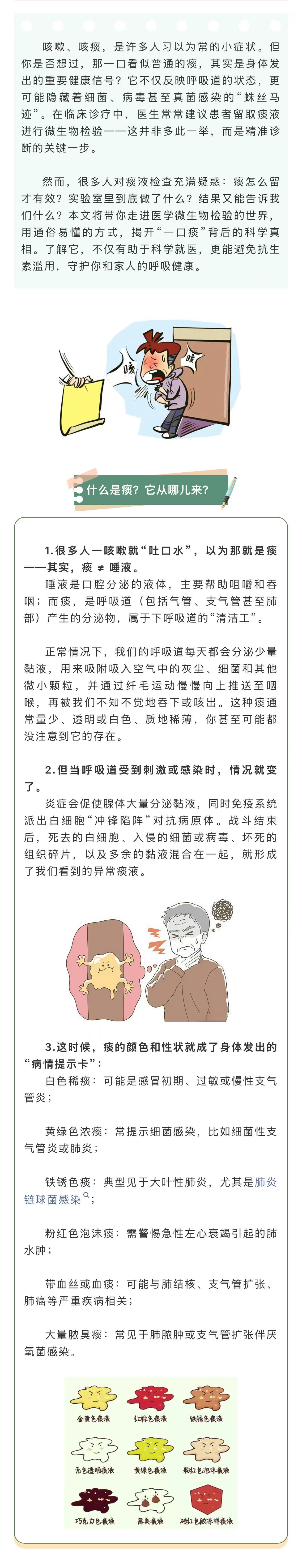 图文简介: 多人对痰液检查充满疑惑:痰怎么留才有效?实验室里到底做了什么?结果又能告诉我们什么?本文将带你走进医学微生物检验的世界,用通俗易懂的方式,揭开“一口痰”背后的科学真相。
