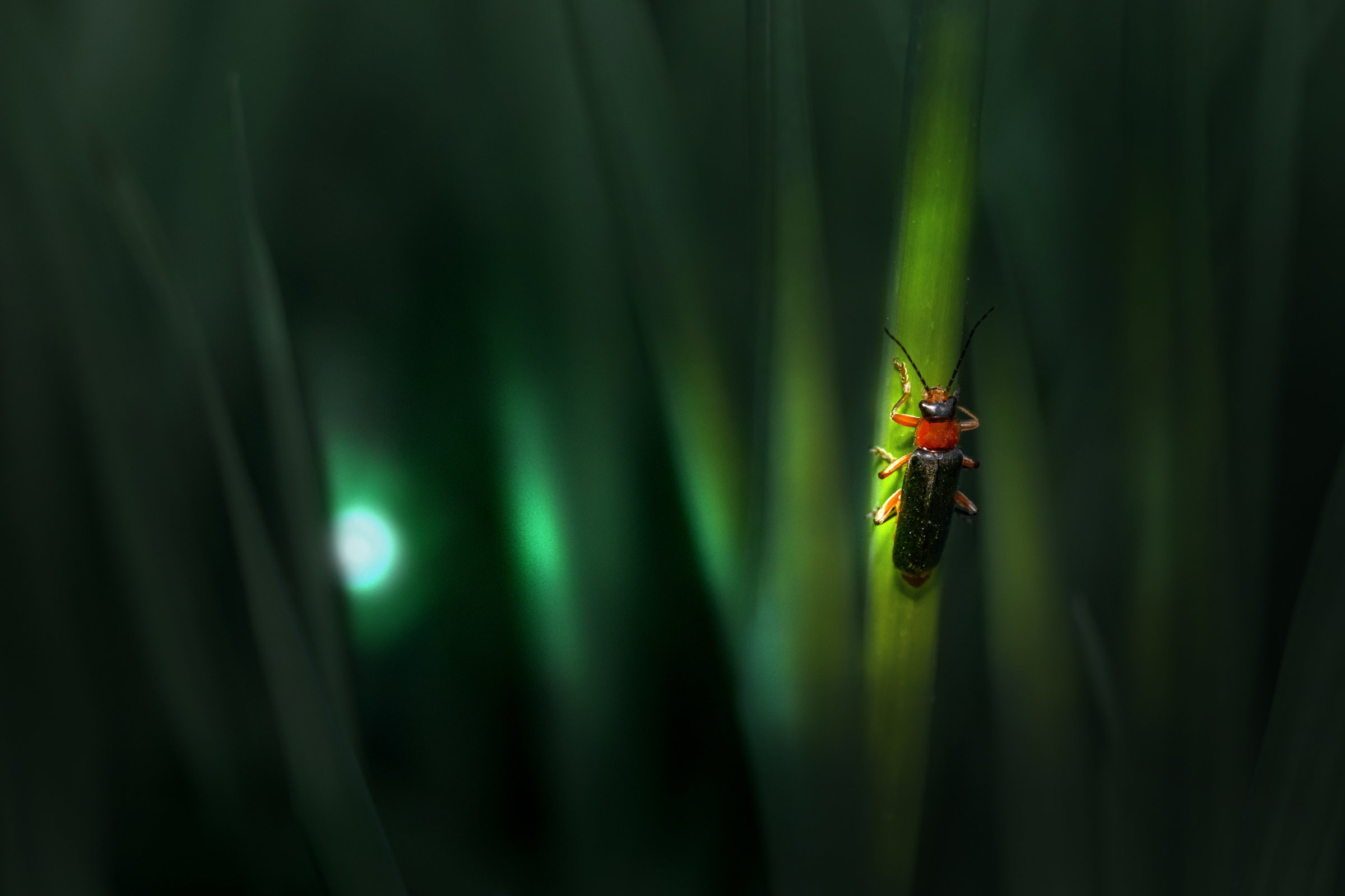 一只雌性萤火虫在草丛中,模拟着特定频率的闪光,引诱空中飞舞的异种雄性。(图片来源:Pexels)