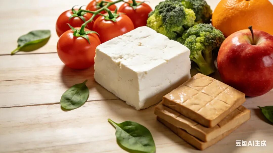 日常饮食中增加豆制品(如豆腐、豆浆、豆干)和新鲜蔬果(如菠菜、西兰花、苹果、橙子)的摄入,保持饮食均衡。