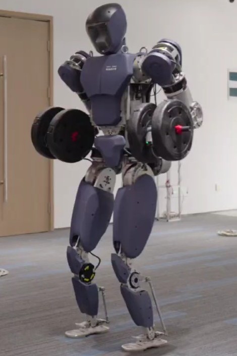 “劳动者”人形机器人拥有强大的臂力。华中科技大学机械科学与工程学院供图