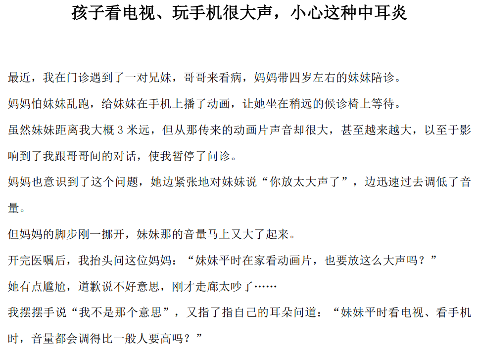 孩子看电视、玩手机很大声,小心这种中耳炎