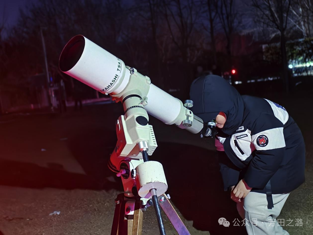 讲座结束后,大家跟随专家及现场工作人员的引导,一起来到户外观测点。尽管冬夜寒冷,但每个人的眼中都闪烁着星光般的热情。望远镜对准深邃夜空,手指轻快记录流星轨迹,每一次闪烁都引发惊叹声此起彼伏,寒冷被宇宙之美彻底融化。