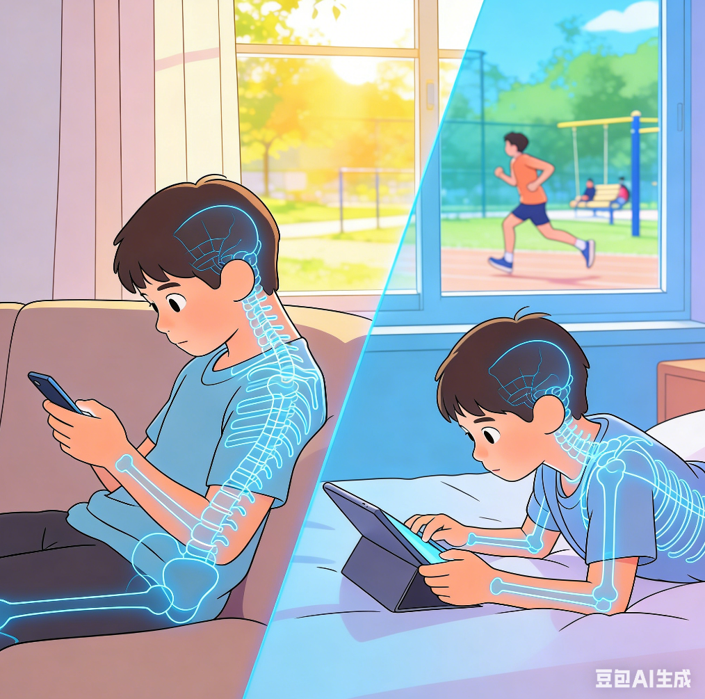 在假期期间,孩子们盯着电子产品的时间大幅增加,颈椎负担亦随之加剧。再加上不正确的坐姿和卧姿,放假不愿意出门,户外运动相应减少等因素,青少年颈椎病的发病风险急剧增加,为孩子们的健康成长埋下了隐患。