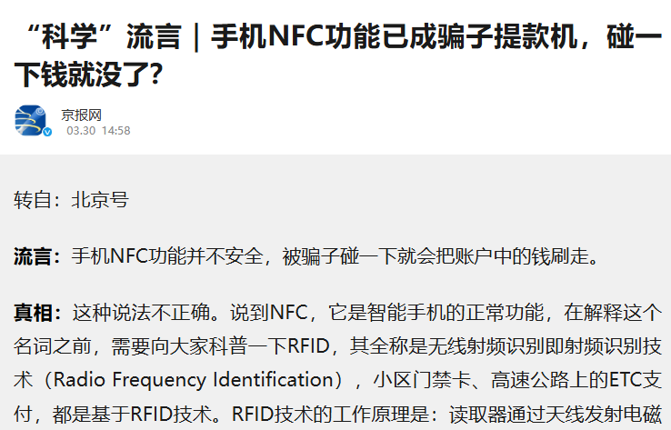 手机NFC功能并不安全,被骗子碰一下就会把账户中的钱刷走。