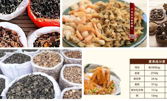 菌类干(如木耳、香菇)、植物海货干(如海带、紫菜)、蔬菜干:蛋白质与脂肪含量较低,主要需防潮与氧化,一般保质期可达2年。