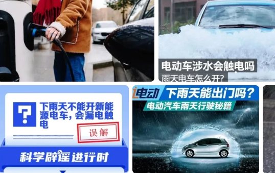 流言: 下雨天不能开新能源电车,会漏电触电。 真相: 这是一种常见的误解。新能源电动车在设计之初,就已充分考虑了防水和防漏电问题,其电池普遍采用IP67或更高等级的防水规格,而这种防护等级可以有效防止外物及灰尘侵入,并且能够在短时间(30分钟及以内)浸水(1米及以下的水深)的情况下保证完好。也就是说,新能源电动车在雨天正常使用,不存在漏电风险,且根据《电动汽车安全要求》(GB 18384-2020)规定,所有上市的新能源车都必须通过严格的涉水测试:车辆应在100毫米深的水池中,以20km/h±2km/h的速度行驶至少500米,时间大约1.5分钟。 此外,新能源车还配备了多重安全保护机制,比如很多电路都有防水要求,充电接口设有防水结构,一旦检测到绝缘异常,系统会进行安全预警并执行相关安全措施等。 当然,任何车辆在暴雨或深积水路段行驶都有风险,特别是在水可能会进入乘员舱的深水,不能强行通过,应该严格按照厂家的产品使用手册使用。但这更多是出于行车安全的考虑,而不是“漏电”问题。总之,下雨天正常开新能源车,不会漏电触电,大家不用过于担心。