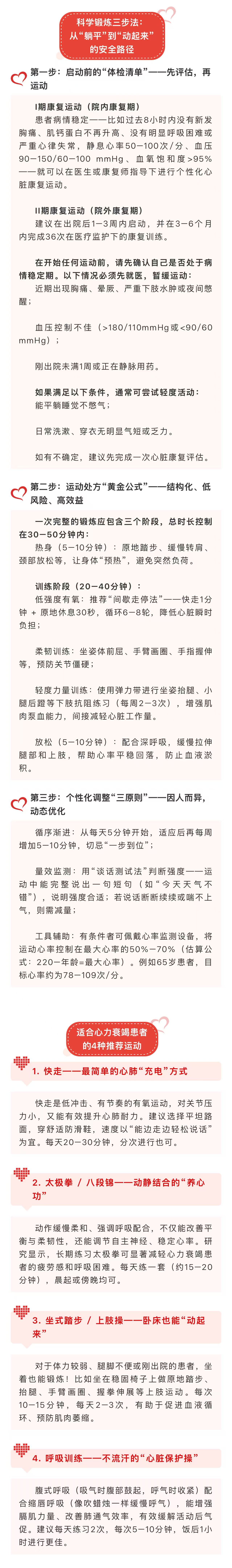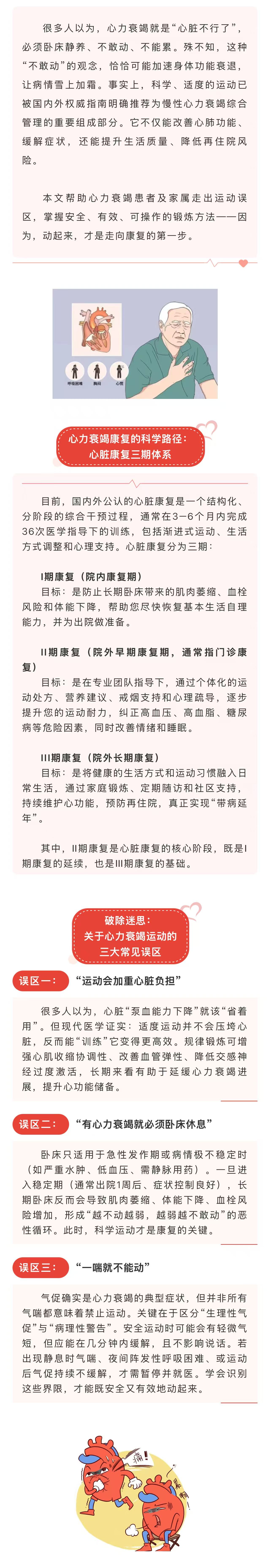 图文简介: 很多人以为,心力衰竭就是“心脏不行了”,必须卧床静养、不敢动、不能累。本文帮助心力衰竭患者及家属走出运动误区,掌握安全、有效、可操作的锻炼方法——因为,动起来,才是走向康复的第一步。
