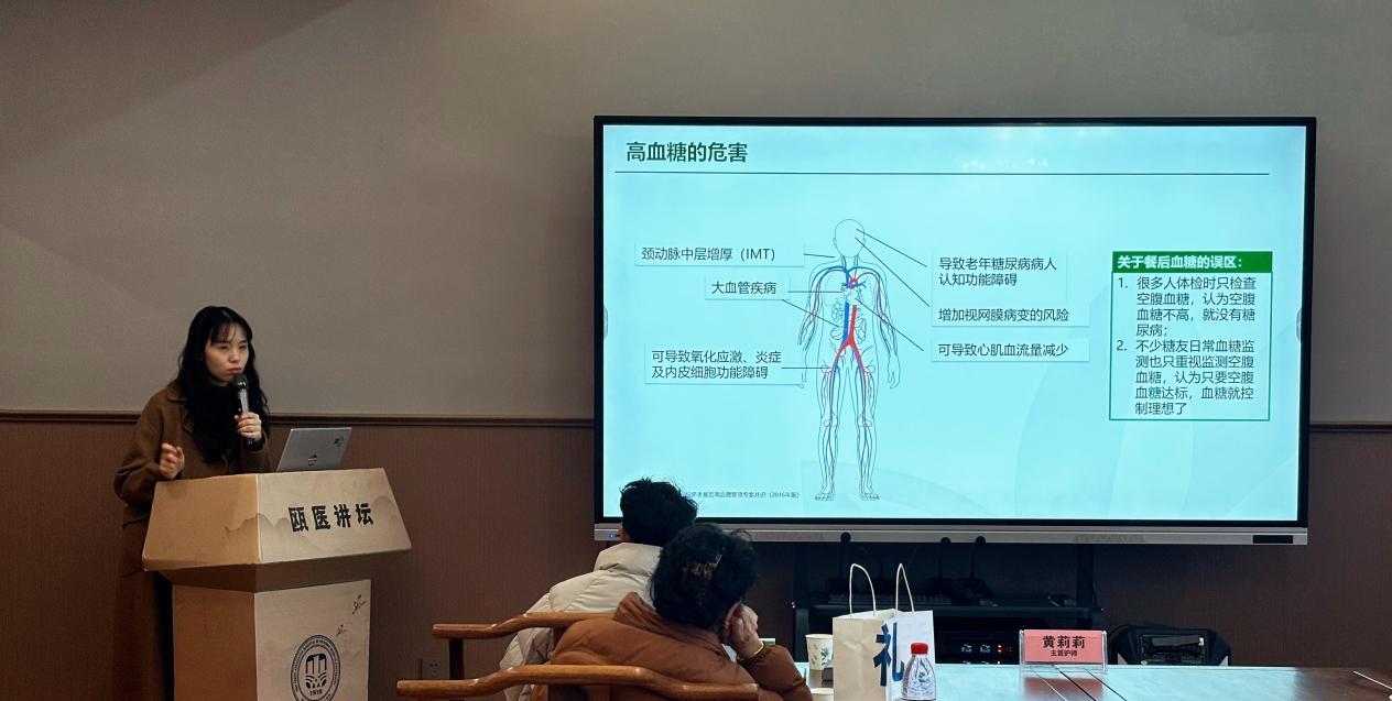 糖尿病专科护士黄莉莉针对冬季饮食依从性问题,以“热汤面碳水吸收动力学”为切入点分享:“淀粉类食物在热汤中糊化程度升高,碳水化合物吸收速率较常温状态增加25%-30%,需采用‘分餐法’(将食物分为2次-3次摄入)或混食效应进食法来控制餐后的血糖急剧升高趋势 ,同时增加膳食纤维摄入以延缓葡萄糖吸收。”